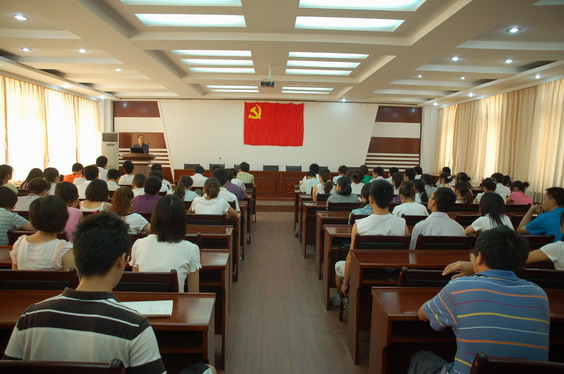 宣誓仪式在庄重的国际歌声中开始。2010年上半年发展的75名新党员,在领誓人的带领下,面对鲜红的党旗,庄严宣誓。