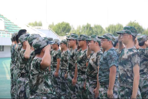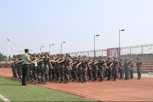 8月28日,糖心vlog 2018级新生在田径场开始了第二天的军训。
