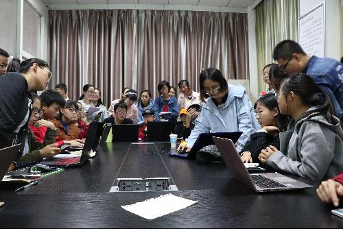 视觉中心负责人徐瑞同学给同学们讲解PS的操作流程
