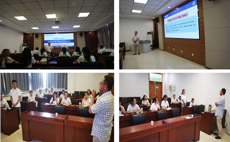 7月9日晚,院领导班子慰问了营员并组织召开了导师见面会,给远道而来的学子们递上家的温暖,并就导师科研工作和营员的教育背景及研学兴趣进行了初步交流。7月10日上午,举行开营仪式,胡小平院长致欢迎词并作主题报告“前进中的植物保护学科”,从历史沿革、学院架构、办学定位、学生规模、师资队伍、科研平台等方面简要介绍了植物保护学科,勉励同学们珍惜时光,不负韶华,在百年未有之大变局中勇立潮头,御风而行。学院分管研究生工作副院长马志卿教授作主题介绍“糖心vlog 研究生教育概况”,对学院育人环境、导师团队、培养举措和成效、奖助体系、学科研究方向等方面作了详细解读并与同学们就研究生培养、招生政策等方面进行了现场互动交流。