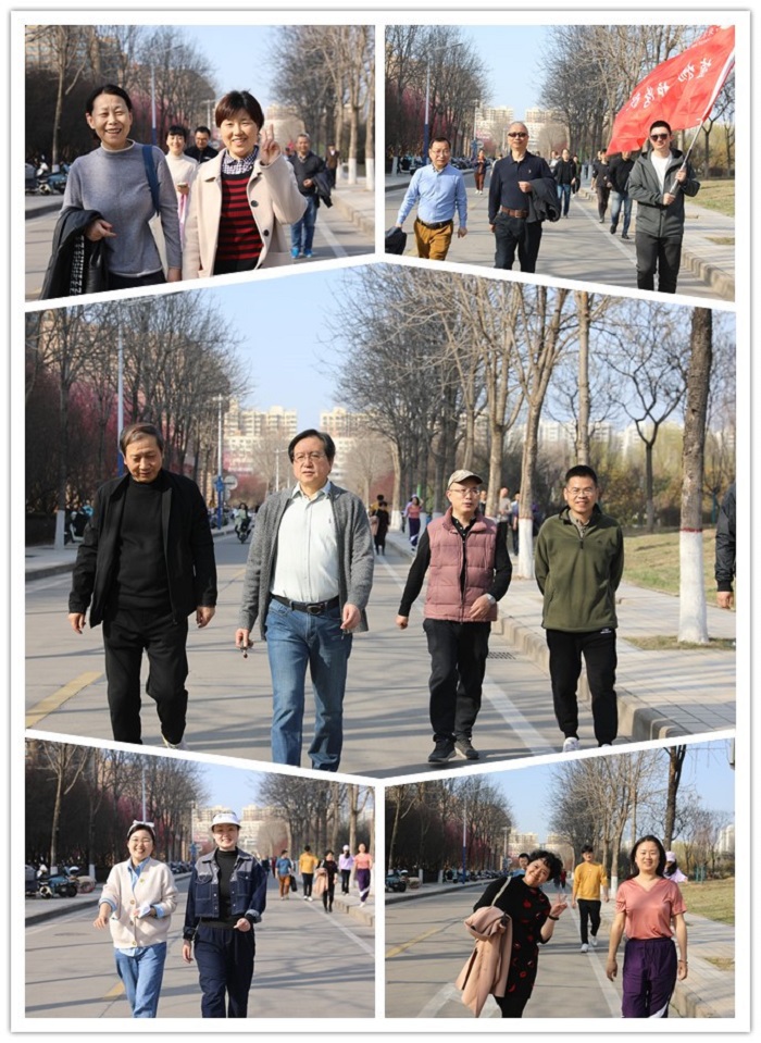 春风拂面,日光和暖,在学院旗帜的引领下,教师们迈着矫健的步伐,精神抖擞,意气风发,一边欣赏校园的春景,一边享受健走的快乐。一路上欢歌笑语,呈现出欣欣向荣、积极向上的美好氛围。
